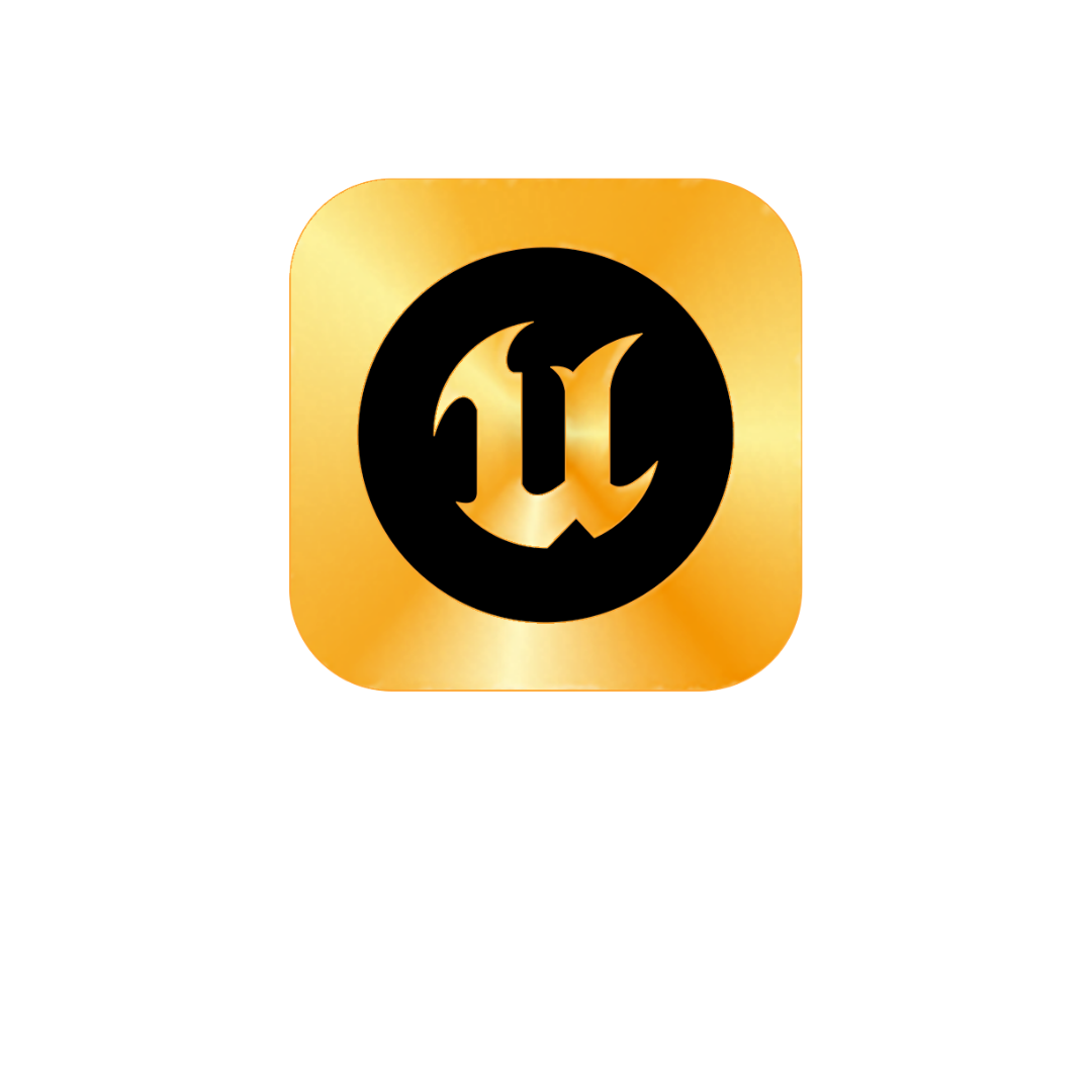 Icon for Unreal Engine, featuring a stylized letter 'U' in black within a gold square background with rounded corners.
